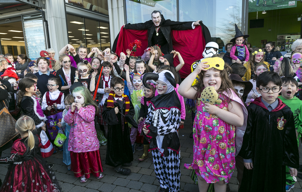 Count Dracula led large crowds of young children and their parents on a unique Spooks Parade to kick off the Halloween season at Bray Retail Park. Local kids went store to store on a spooky adventure, trick or treating staff and customers alike. And, not to be outdone, many of the staff of the stores were kitted out in their ghoulish best. We had an amazing turnout so thanks to everyone that came along!
